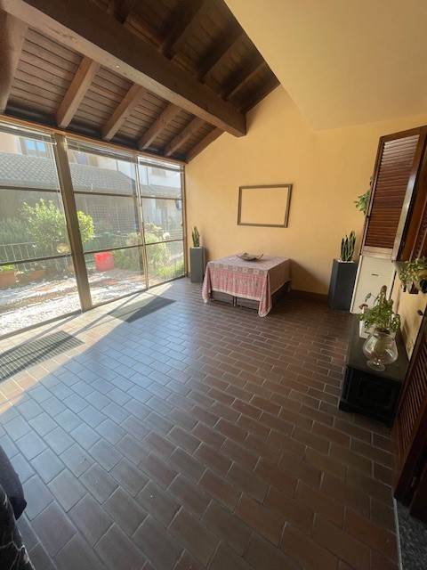 In zona molto tranquilla e ricercata bellissima villa a schiera pari al nuovo cosi disposta P. I.: ampio garage doppio e 2 locali (uno uso caldaia e l'altro uso lavanderia); P R.: ingresso, bellissimo soggiorno con importante cucina a vista, antibagno, bagno, per poi voler trovare momenti di relax una veranda/dependance esterna e completa il tutto un curato giardinetto; 2° P.: 3 camere da letto antibagno, bagno e balcone per completare il tutto con un piano sottotetto raggiungibile da scala e utilizzabile anche come locale hobby. Libera al rogito.